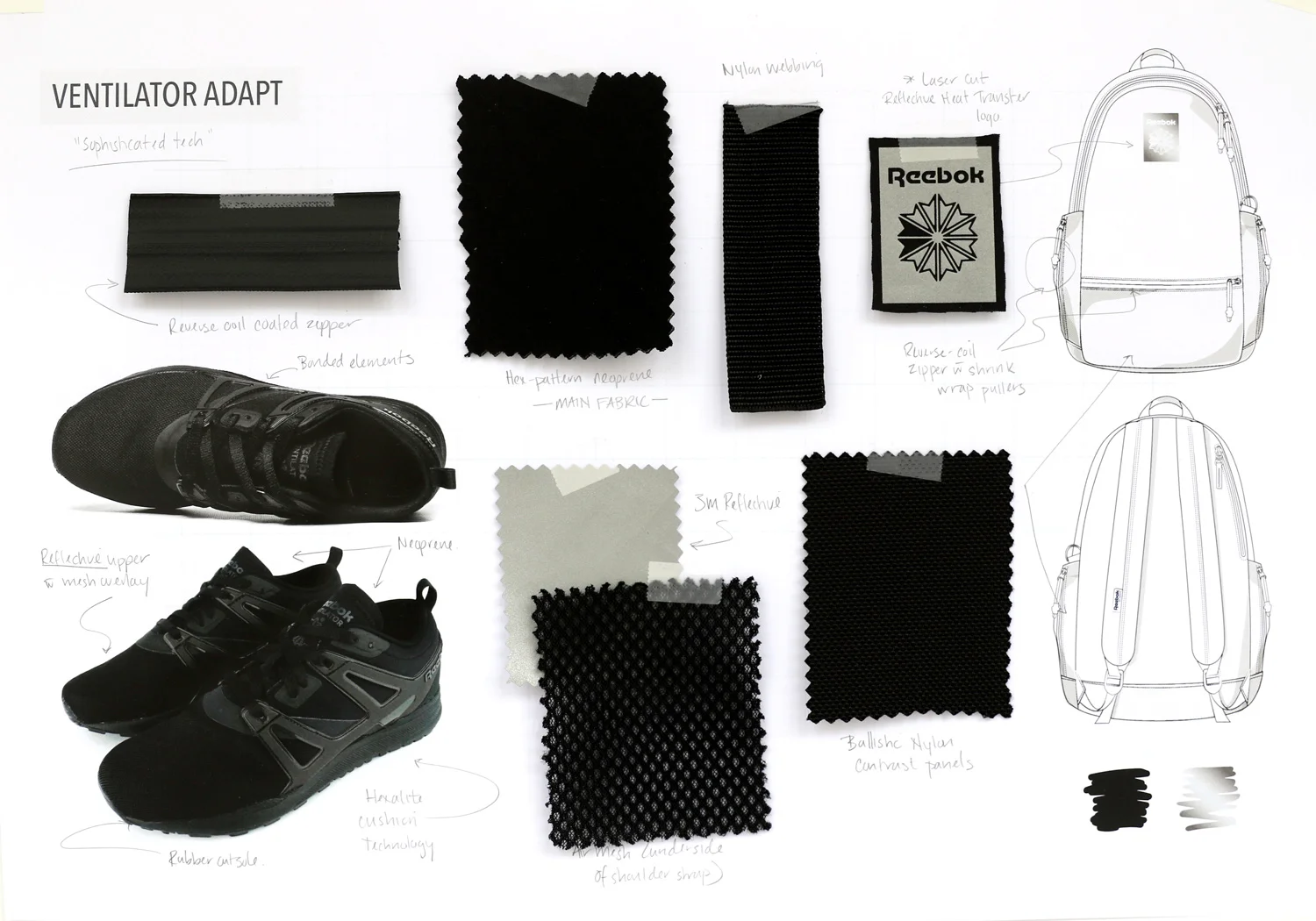 Designed to hook to the Reebok Ventilator Adapt ST, this pack is about neoprene, sleek technical details and reflective hits